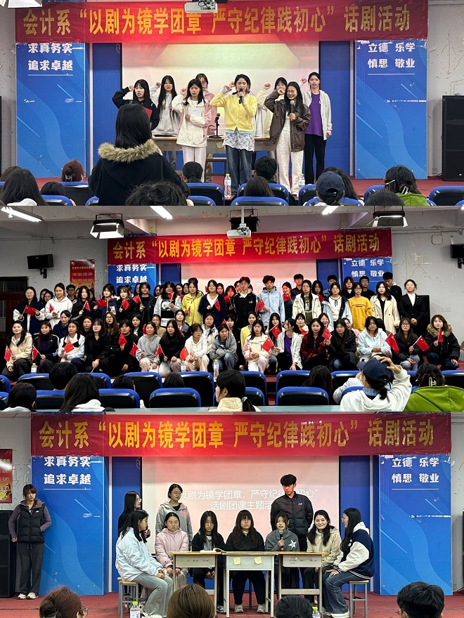 为全面落实从严管团治团要求,推动团员青年学深悟透《中国共产主义青年团章程》及相关纪律条例,11月13日晚,会计系在山润楼119开展“以剧为镜学团章,严守纪律践初心”主题话剧团课活动。