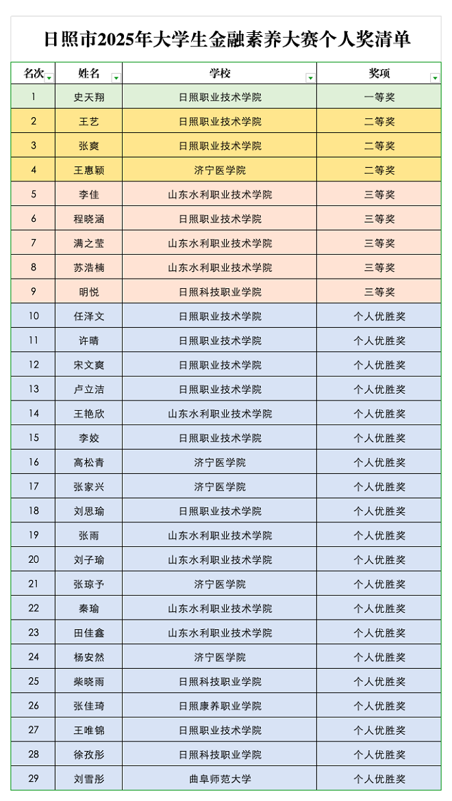 近日,“青春逐梦、金融护航”日照市2025年大学生金融素养大赛圆满落幕,我系学子凭借扎实的金融知识与出色的临场表现,在赛事中脱颖而出,斩获多项个人奖项,展现了会计系学子的专业素养与综合能力。